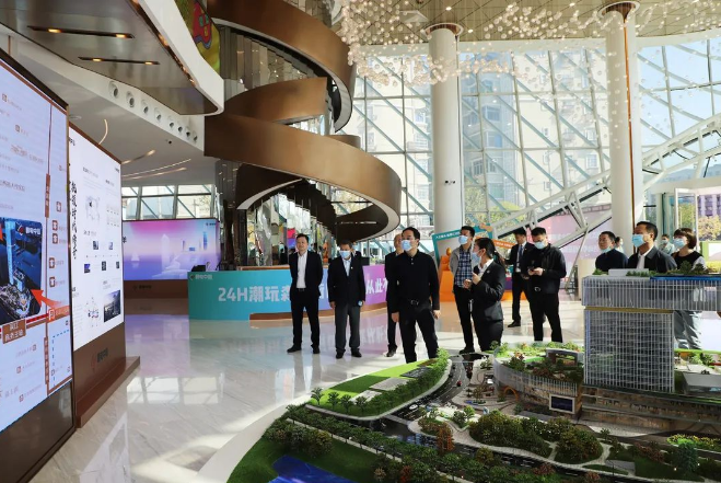 圖為:考評組一行參觀贛電東方城項目