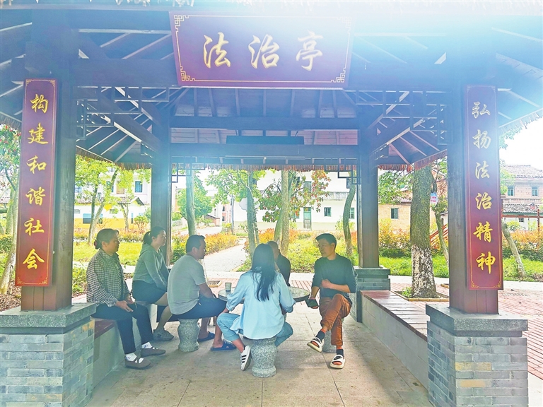 小微陣地的全域覆蓋則讓法治觸角延伸至基層末梢。在余江區中童鎮鴨塘許家村,法治文化廣場既是村民們散步休閑的好去處,也是解決糾紛、學法用法的首選地。近日,在“法治議事亭”,村民許大爺因土地糾紛與調解員溝通,調解員通過現場普法明晰權責,最終雙方達成和解。