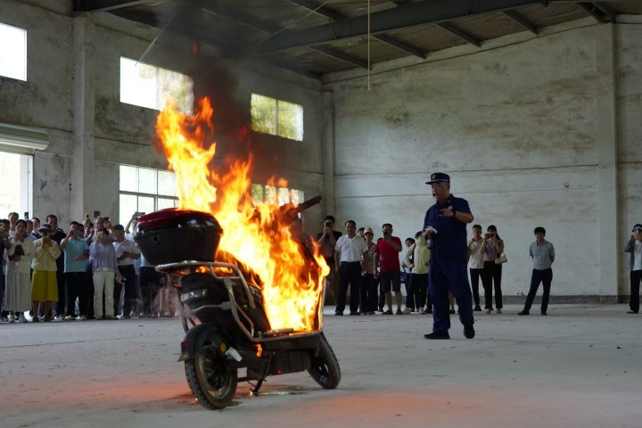 “電動自行車一旦短路,30秒就能產生明火,100秒就足以奪人性命。”配合著消防宣教員劉瑋的講解,放在倉庫內的廢舊電動自行車正在熊熊燃燒,升起的黑煙迅速遮蓋了整個倉庫頂棚,幾十秒的時間里,倉庫內能見度迅速降低,濃密的煙塵、刺鼻的氣味讓現場員工紛紛捂住了口鼻。日前,在贛州德隆樹脂涂料有限公司空置倉庫內,劉瑋在開展教學。“光講理論效果有限,必須用‘如我在場’的體驗式教育,讓員工現場感受火場危險。”他一邊講解電動自行車火災預防知識,一邊組織員工進行真煙真火逃生演練,通過換位思考強化安全意識。