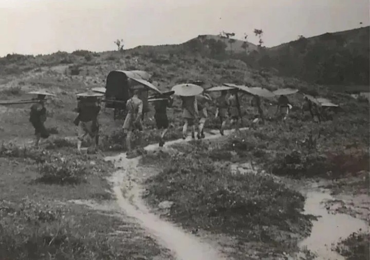 美國飛行員跳傘獲救后,政府組織民眾冒雨用轎子將他們送去縣城