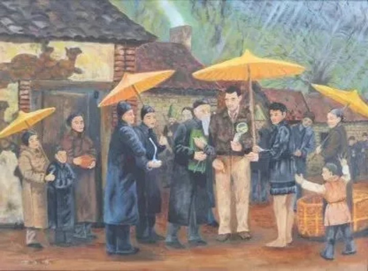 美國飛行員后代托馬斯·馬西亞畫的一幅水彩畫《父親與營救他的廣豐村民》