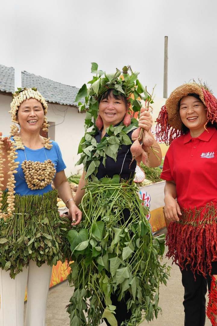 每一件“時裝”都是田野的饋贈和辛勤的收獲——稻草裙,帶著草稈的香味;花生帽,滿滿的設計感;南瓜包,別出心裁……人們在會心一笑中,感受著勞動人民的智慧與幽默。