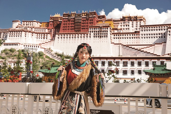 在布達拉宮前