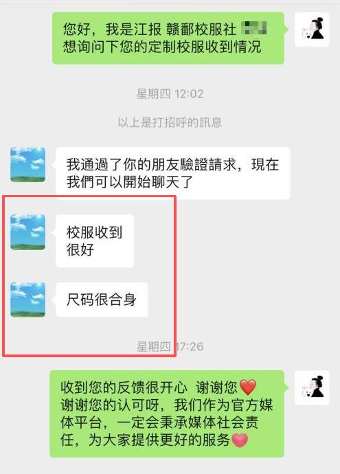 南昌的趙女士說:“感謝贛鄱校服社這個平臺讓我省心了好多。”