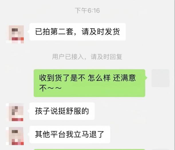 一位復購的李女士表示:“第一次購買時就對品質很滿意,孩子說挺舒服的。”