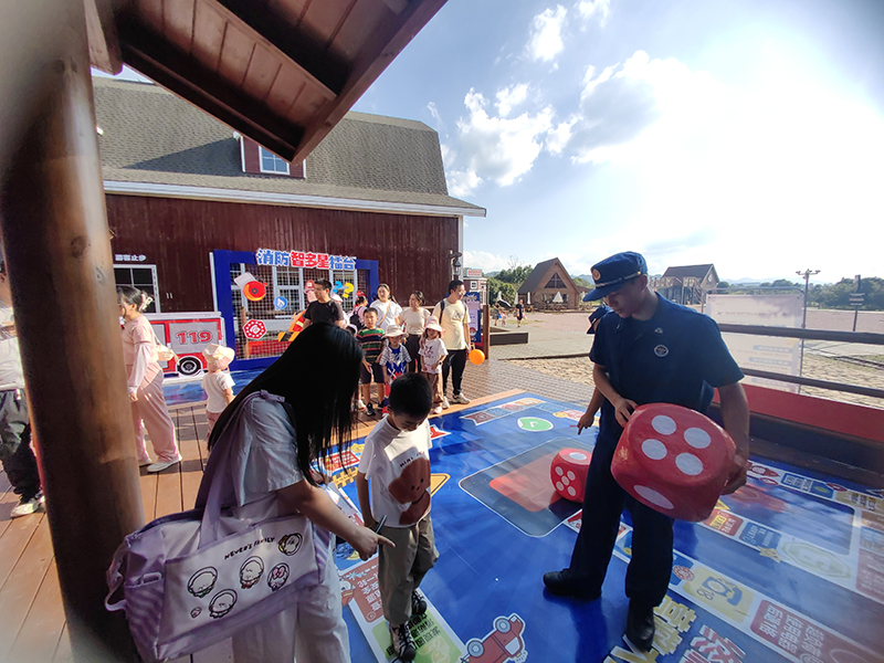 除了知識搶答,VR火場逃生、營救大作戰(zhàn)、消防智多星擂臺也排起了小長隊。在營救大作戰(zhàn)區(qū)域,孩子們圍著棋盤擲骰子,“我走到‘發(fā)現(xiàn)煙頭’啦!要把它扔進垃圾桶!”7歲的周子軒認真完成“任務”,拿到印章時開心地跳起來:“我要集齊4個印章,換消防小徽章!”