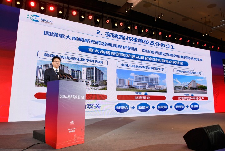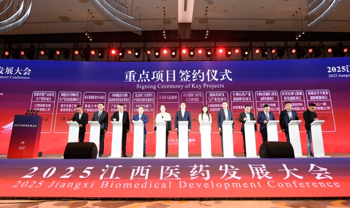 開幕式上舉行多項議程,不僅介紹了江西生物醫藥產業優勢,深度解讀了生物醫藥領域創新趨勢,進行了江西省生物醫藥產業推介,還正式發布了“2025重大疾病新藥靶發現及新藥創制全國重點實驗室建設進展報告”,同時一批生物醫藥重點項目完成集中簽約。